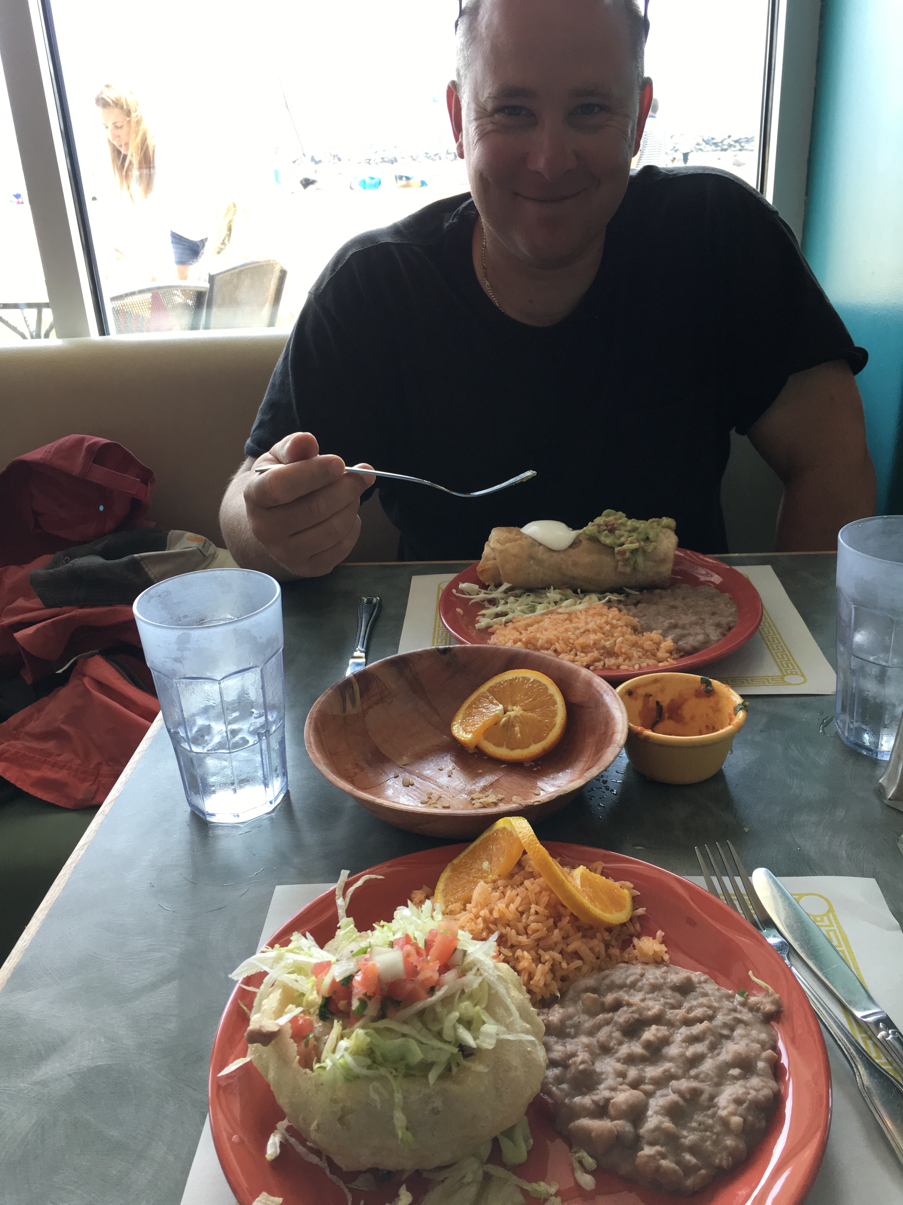 Chad used to eat Chicken Chimichangas before we changed our diet, so I took him out for one at this cute lil’ place on the beach in Santa Cruz, CA.
