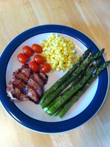 Here’s a simple dinner we ate last night. Another great tip is to throw as many colors as possible onto your plate! We “eat with our eyes,” so make your plate look appealing!